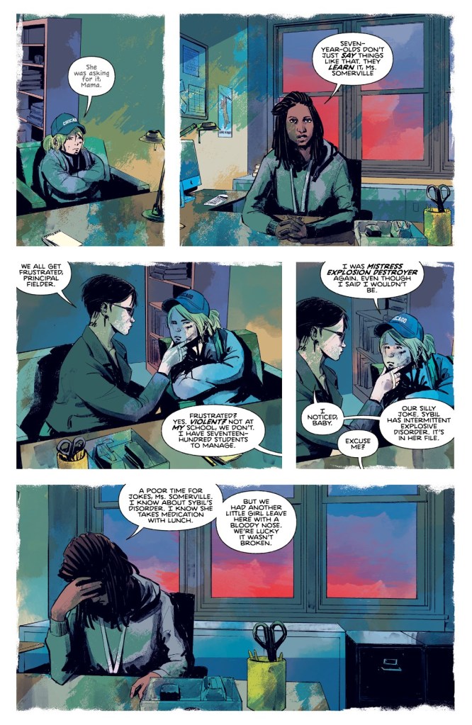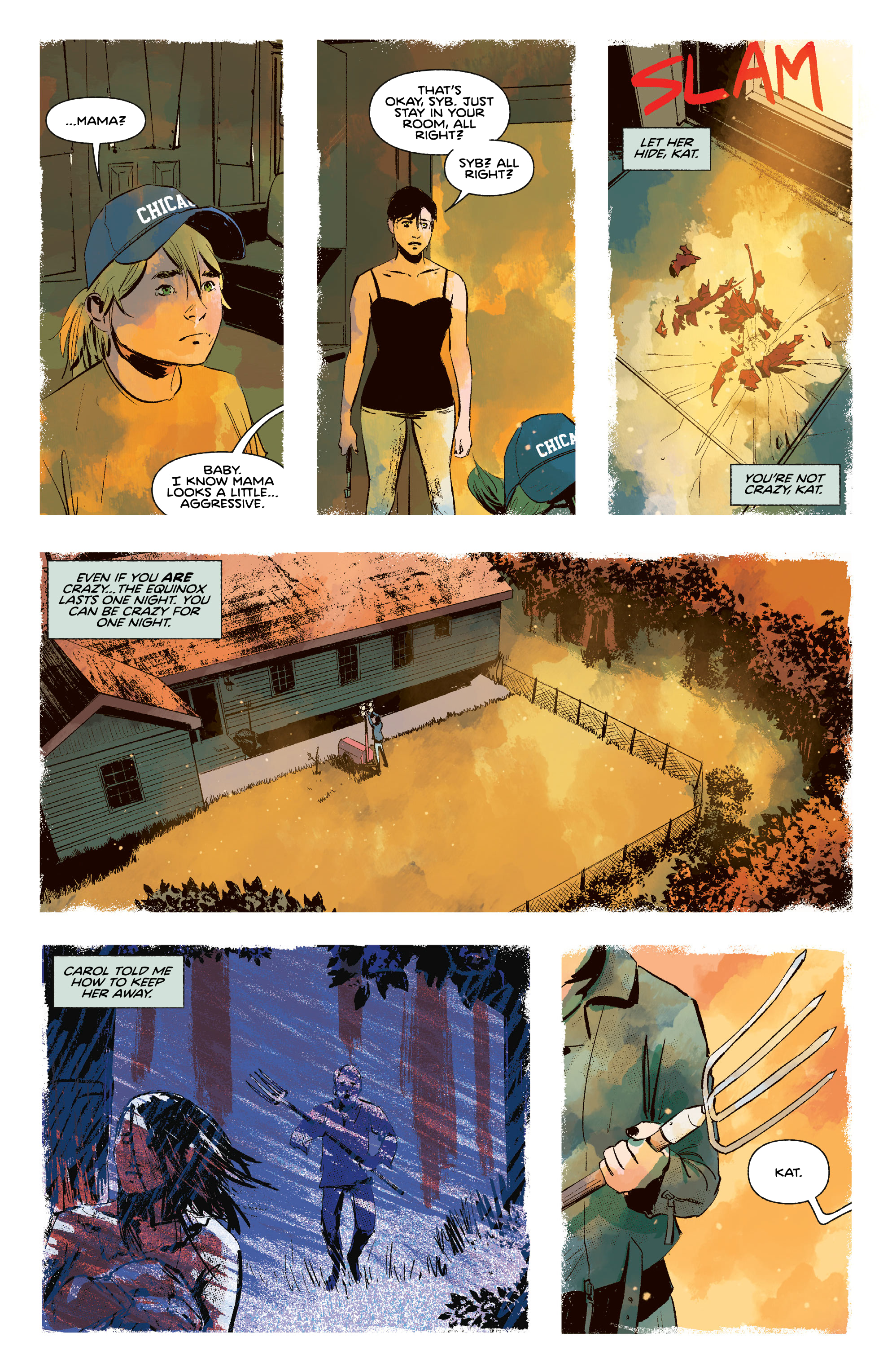 After being born in Comfort Notch, Kat does remember some of these aspects of the town, but her memories are fuzzy—much in the same way the panels are for this series. While each pages does mostly follow standard panel grids, it’s their edges that stand out. They’re sketchy at times—ill-defined as though they’d been rubbed away by years of fingering past them in a stack of photos. More than anything, they help to reinforce the idea of the waxing and waning of Kat’s memories. Even when she begins to remember or learn something of the town, those edges remain, signaling that she never really does have the complete picture. Even the final panels of the series begin to fill out with more negative space, as though the bleed itself is looking to wipe out what she knows about Comfort Notch.