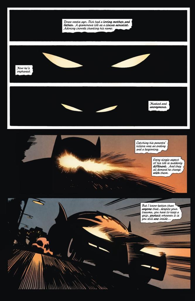 Even at its opening, Batman & Robin: Year One is going to be a series that will be remembered for how it treated the characters and world it inhabits. It shows us the origins of a character relationship we’ve been watching for eighty four years and makes it feel just as fresh as it did in Detective Comics #38. Because that’s what a good introduction should do—it should make the reader feel like they’ve known these characters forever, even if that’s their first time reading.
