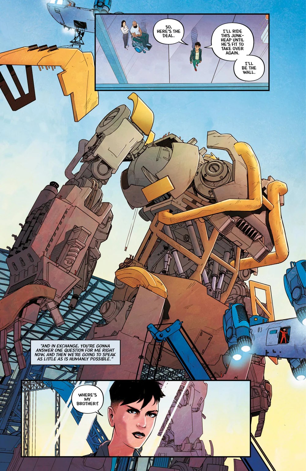 From where we last left off in the story, Kit was taking over the piloting of the mech Defender Nexus from her brother, Dej. Dej has been, for years now, struggling with alcohol abuse as a result of the pressures of piloting Defender Nexus as one in a generational line defending New Hyperion from the persistent kaiju threat. Dej, however, is one of the only people who can coach Kit as their father pushes her to the point where she nearly leaves the family for a second time. But with the appearance of an unknown mech in the city along with the continual alien threat, Kit has to get herself together while also making sure her brother gets the help he needs. All the while, their estranged uncle has been plotting in the background how to get revenge for a decades-old indignity.