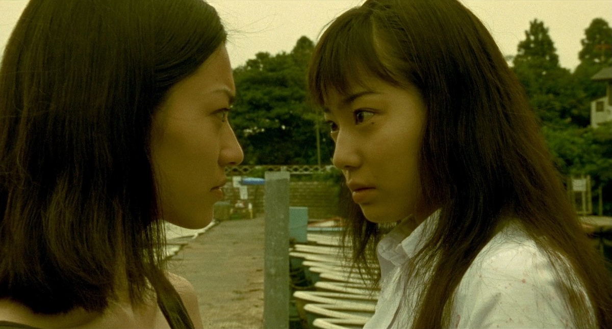 The movie version begins with some creeper carrying around a grocery store bag. When he peers inside the bag, we see an open eye staring back at him. That’s plenty weird enough, but we’re then introduced to Tsukiko (Mami Nakamura), a young photography student living with her boyfriend, Yuuichi (Kouta Kusano). They have a new neighbor living below them, the creeper we saw at the beginning of the movie, a guy named Takeshi Yamamoto (Kenji Mizuhashi). Tsukiko is woken up in the middle of the night by strange noises coming from the apartment below.