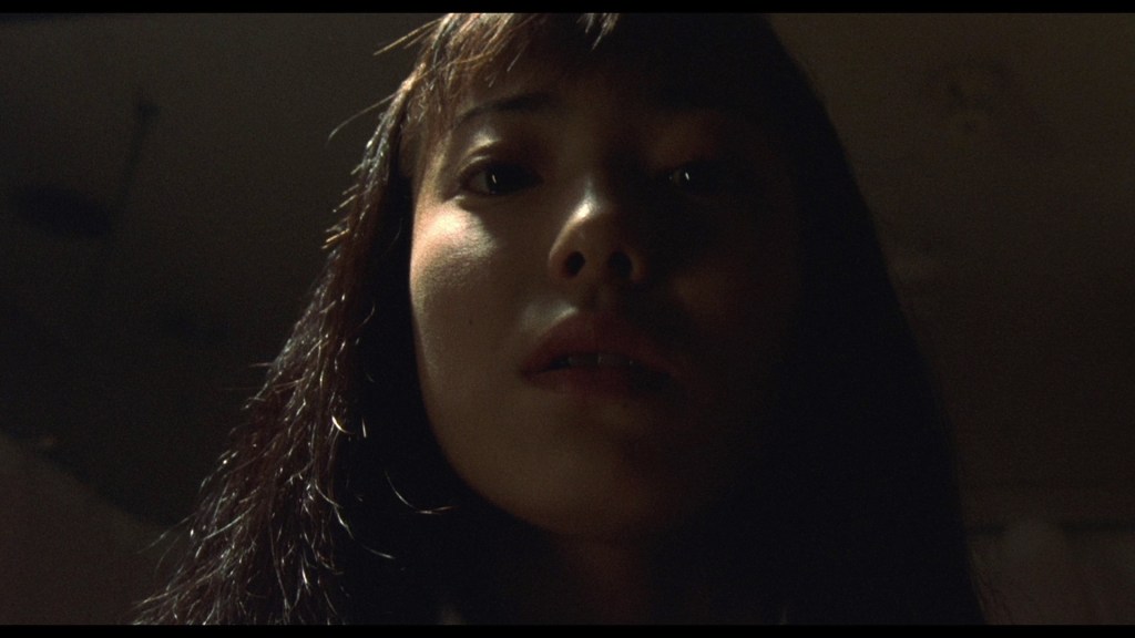 To anyone who’s read the manga, it’s obvious that the young girl that threw nail polish remover in Takeshi’s eye is Tomie (Miho Kanno), regenerated and out to torment the last surviving member of the class that mutilated her. Watch Tomie laugh with glee as she tries to force feed live roaches to a bound Tsukiko. I find it odd that this movie spawned eight sequels. There’s just not much to Tomie. Men obsess over her. Then they kill her. Then they die in some unusual fashion. She regenerates and starts the process over and over again. What’s her motivation, really?