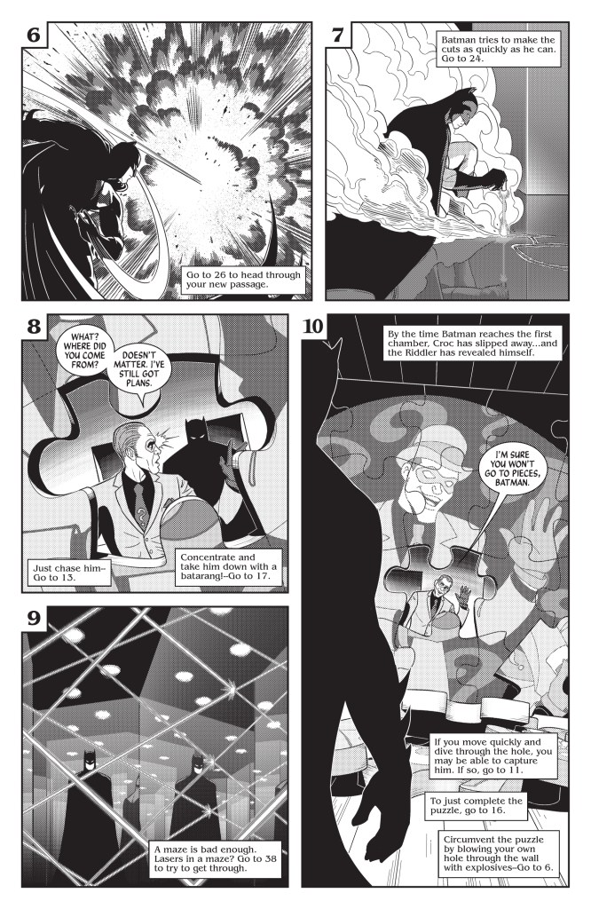 This particular volume of Batman: Black and White brings us six issues of five stories, each highlighting Batman himself, his rogues, his friends, or another look at the characters and what can be done with them in the hands of different artists. The range runs wide between hard-boiled detective pieces, fantastical re-imaginings, full ghost stories, and choose-your-own-adventures that break through their own mold. These are the stories that happen outside of the mainline series and major events—the small, everyday cases and conflicts that are condensed down perfectly into just a dozen or so pages. The writers, artists, and letterers working on these all absolutely had a Batman story in their heads, and so we get to finally enjoy them.