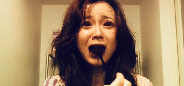 Fortunately, I discovered 2007’s Exte: Hair Extensions from director Sion Sono. We begin with an inspection of a cargo container filled with wet, moldy black hair, The customs officers freak out when they discover the body of a young woman buried in this disgusting hair and the police are brought in to investigate. They figure the girl was victim to an organ harvesting ring and then stuffed away in a container of hair extensions. Yamazaki (Ren Osugi) is one of the morticians working with the police and he happens to be a tricophile. What is a tricophile you may ask? Someone who fetishizes human hair. Hey, let your freak flag fly, but stealing the corpse of an organ harvesting victim and stuffing her in your apartment may be going too far!