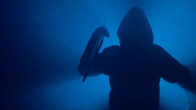 This movie is not without a humorous moment. While training, a young gymnast named Frank (Michael O’Leary) breaks his leg. Later, while investigating the disappearance of his girlfriend at the high school in the middle of the night, he discovers the bodies of the murdered students in the lockers. If that wasn’t bad enough, the killer chases him while he’s trying to get away on crutches.You know Frank isn’t going to make it, but it’s still impressive how fast he can go on those crutches.