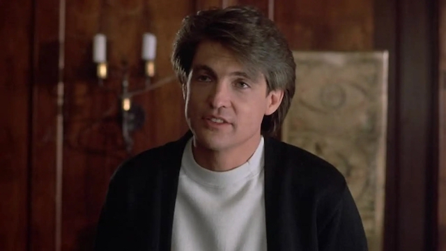 Fast forward twenty years and a young man named Jonathan (Peter Liapis) has inherited a mansion from his late father, Malcolm Graves, a man he never knew. Jonathan’s girlfriend, Rebecca (Lisa Pelikan), asks to throw a party with only a few guests. This small party turns into a raucous affair with a host of malcontents partaking in the activities. Their names are Mike (Scott Thomson), Dick (Keith Joe Dick), and Toad Boy (Ralph Seymour). Mike is a chain smoking dork who wears his sunglasses at night. Dick is a self-professed ladies man with a one track mind. Toad Boy is a creeper who keeps talking about his need for “sweet meat.”