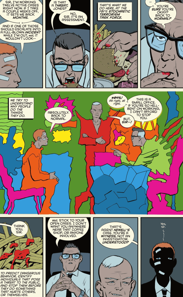 There’s oddity and there’s novelty—the latter can wear out fairly quickly, but the former can stick around in a reader’s mind while they try to parse through what they’ve just read. Absolute Martian Manhunter establishes itself firmly in the former as this interpretation of the character is more akin to a stand in Jojo’s Bizarre Adventure than the stoic alien we’d grown accustomed to in cartoons. But then that’s why this interpretation works so well—it’s unlike what we expect from this character and so the novelty of the alternate universe fades quickly to be replaced by the curious oddity. We’re compelled to read because we truly can’t know where this version of the character can go as it lets go of so much of canon’s baggage and expectations. It’s reminiscent of the pre-Vertigo days where writers were given silver-age heroes and told to do what they wanted. We can find a new way to care about a character that’s always been reader’s periphery due to nostalgia, but give him something more that makes him feel like a new character.