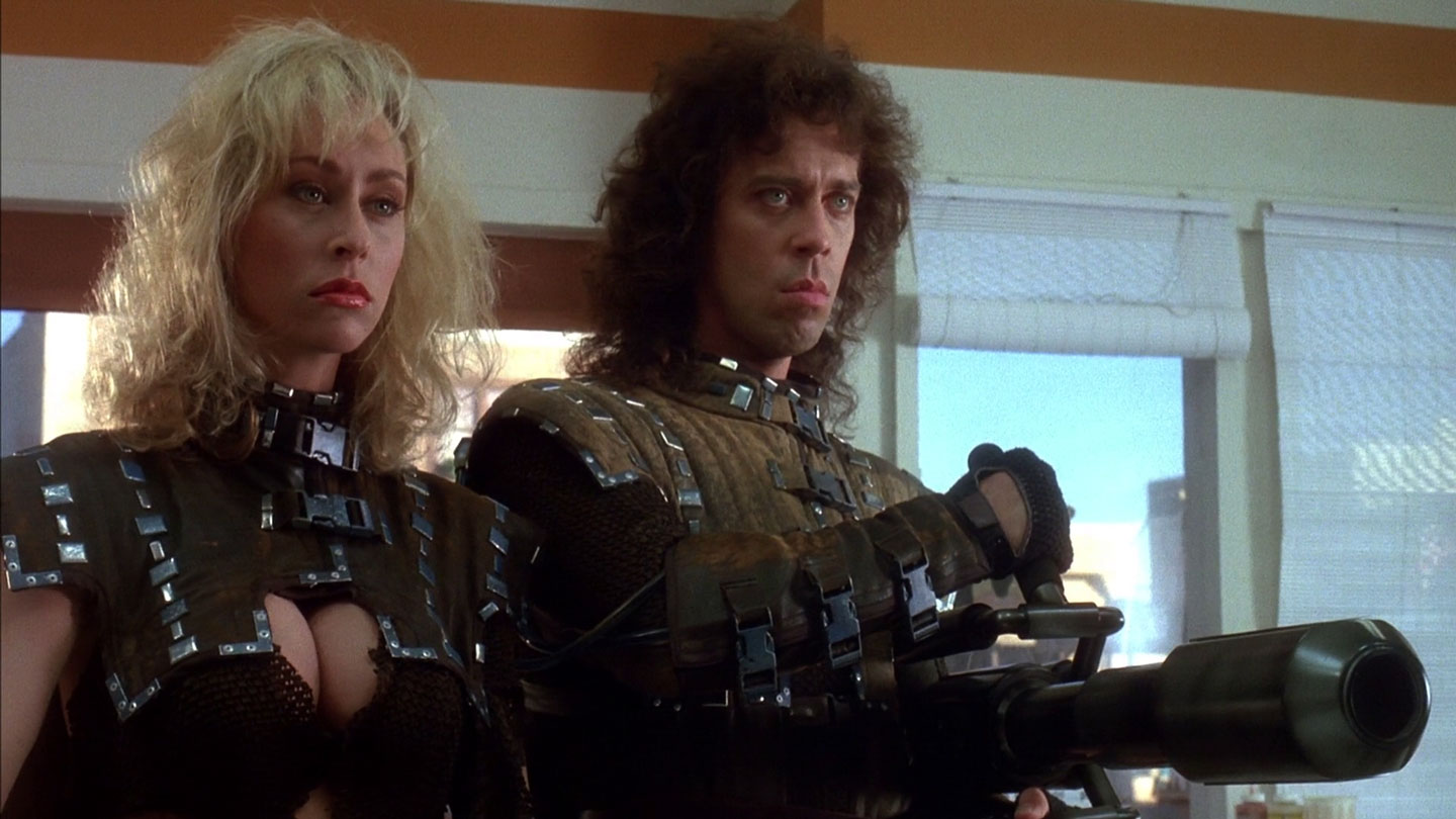 The bounty hunters from the last movie are back with Charlie McFadden (Don Keith Opper), the drunken farmhand from the last movie, in tow. He went away with the aliens at the end of the first movie and became an intergalactic bounty hunter. The bounty hunters received word that there are still critters back on Earth so off they go. The one bounty hunter that can’t make up his mind what to transform into decides on the Playmate of the Month from an old Playboy they find on the side of the road in Grover’s Bend. So we now have a blonde intergalactic bounty hunter shooting up some nasty Critters with her bazooka gun. It doesn’t get much better than this.