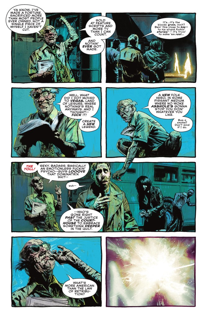 John Constantine as a character is a catalyst for stories. He has so much to his personality and mythology that he can be slotted into anything magic-adjacent and have a plot spring forth from him. It’s why Hellblazer existed and why Dead in America continues that tradition. Sometimes all that’s needed for a great comic is a strong enough character to warp the world around them and Constantine really does do nothing but warp everything around his little finger.