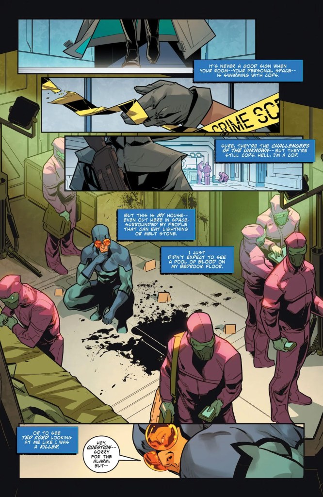While I am just as easily manipulated by a story with The Question—I grew up watching the Justice League Unlimited cartoon—this is the kind of role for the character that ends up fitting the best in a modern comics context. The beat on the streets of Gotham can be fun occasionally, but seeing mysteries solved on a space station just brings that extra bit of flair and genre-blending that makes cape comics all the more fun.