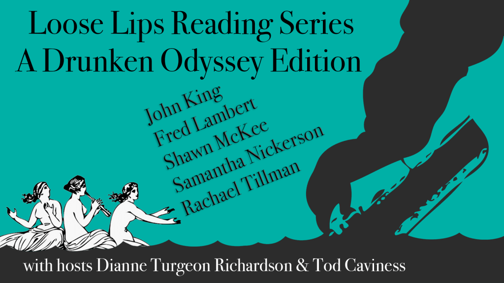 The Drunken Odyssey commandeered the Loose Lips oratory series during the tidings of yule and whatnot on December 2, 2025. The readers included Fred Lambert, Rachael Tillman and her deadly horsemen Shawn McKee, Samantha Nickerson, and that rapscallion John King. Tod Caviness hosted the event with much good cheer.