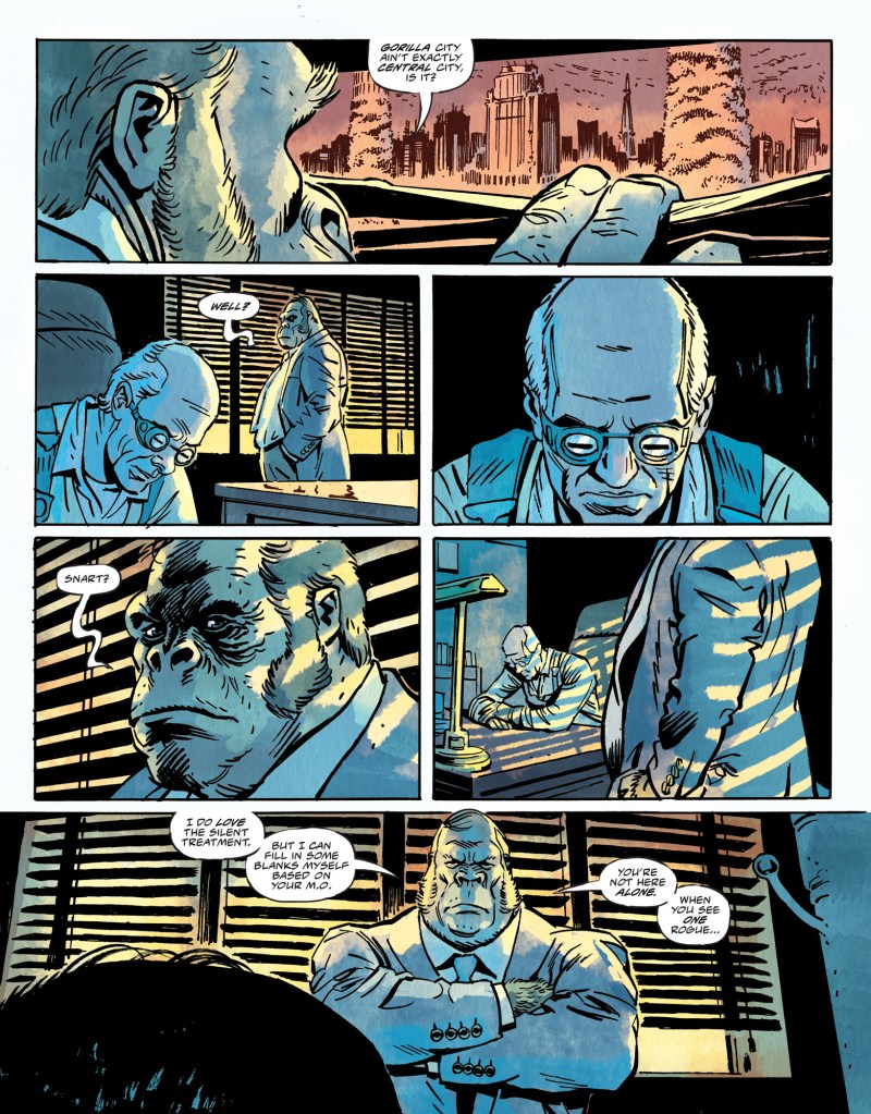 A decade has passed for Captain Cold and he’s scraping up just enough to live. The rest of the Rogues have scattered to the wind and, if they do make any contact, can be tossed right back into prison for their past crimes. But Leonard Snart has been studying in that decade–scouring maps, reading up on lore, following leads and rumors–for the final score that will change the lives of him and his Rogues: the gold hoard in the center of Gorilla City. But even after all of that careful planning, Captain Cold, Golden Glider, Bronze Tiger, the Tickster, Mirror Master, Heatwave, and Magenta are confronted with Gorilla Grodd and all of the violence his city can rain down upon them.