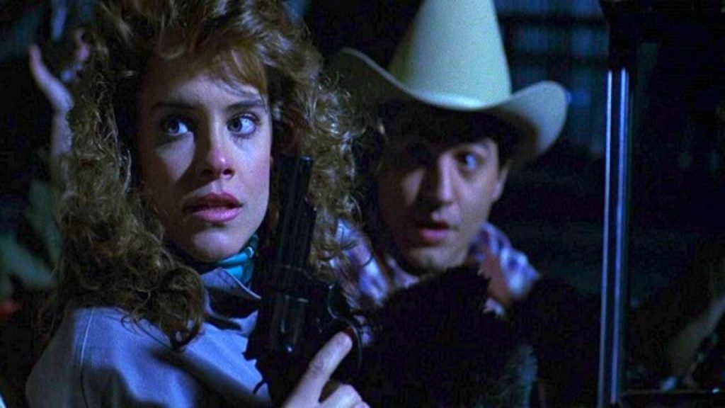 Reggie goes home to find her sister Sam (Kelli Maroney) perfectly fine and oblivious to this disaster. She had gotten into a fight with their evil stepmother the night before and decided to bail on the comet watching. Later, they run into a trucker named Hector (Robert Beltran) who spent the night in the back of his steel truck. Will these three survivors be able to navigate such an apocalyptic event? Yes, and they even manage to get some mall shopping done along the way. There are some mutant store clerks, but Reggie and Sam waste them with automatic weapons.