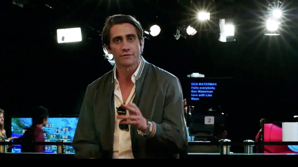 Lou’s first sale featuring footage from a carjacking goes to a local news station called KWLA 6. Nina Romina (Rene Russo) tells Lou that he has a good eye, but he needs better equipment. Lou buys better equipment and manages to sucker an unemployed loner named Rick (Riz Ahmed) to be his intern for just $30 a night. As time goes by, Lou and Rick become more skilled at their job to the point where they become true rivals for Joe. When Joe purchases another camera van, he offers Lou a job to run it, but Lou turns it down. This forces Joe to really start competing with Lou and he beats him to every scene.