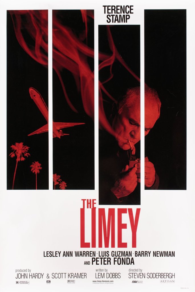 Tonight’s movie is 1999’s The Limey from director Steven Soderbergh. It stars Terence Stamp as a man named Wilson who travels to Los Angeles to investigate the possible murder of his daughter, Jenny (Melissa George). Jenny’s good friend Eduardo Roel (Luis Guzmán) reveals that Jenny was seeing a rich record producer named Terry Valentine, but that she died in a car accident leaving his house in the hills. It was a bad turn that broke her neck before her car went up in flames, but Wilson isn’t buying it. He suspects foul play and Eduardo reveals that Jenny confronted some shady characters at a warehouse that she suspected Terry had gotten involved with.