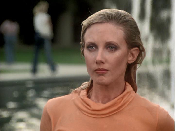 Jennifer keeps taunting Phi Epsilon Delta members and, in a fit of psionic rage, she knocks Jennifer into a water fountain. I think she then tells her how much of a mean person she is and blah, blah, blah. When you look like Morgan Fairchild, you can do whatever you want. The world is yours to torment. Later on, Sarah gets invited to a surprise party for her favorite professor, but it’s trap. Jennifer and the other Sigmas throw vegetables and mud (?) at Sarah, humiliating her. Erica uses this humiliation as a chance to deepen Sarah’s hatred for Alpha Nu Sigma.