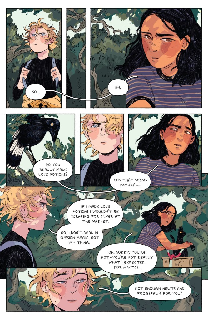 Jo’s mother hasn’t been feeling well. She started feeling weak a few weeks ago and now can’t even open her eyes. She’s alive, but there’s something wrong. Since the passing of the town witch, Haresden has been without the magical intermediary that would normally help in these situations. But all the town has now is her granddaughter, Orla, and she’s only back for a little while. With some convincing, she does agree to help Jo and her family, finding the source of the affliction—a spirit in the attic and one of her grandmother’s bones in the hearth. We learn that Orla’s grandmother, the titular Mamo, had her bones buried improperly all over the town to sow all manner of chaos. There were no other witches to clean up after her mess, so Orla was inevitably drawn back. But with every proper burial of the bones, a line is being drawn on the outskirts of the town, one that will inevitably keep Orla from escaping again.